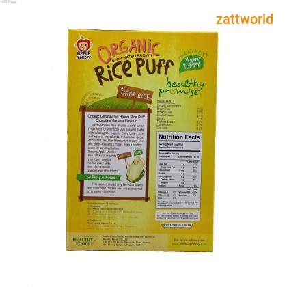 Product details of APPLE MONKEY ORGANIC GERMINATED BROWN RICE PUFF CHOCOLATE BANANA 30g kegemaran bayi kanak snek bijirin halal organik organic baby food cracker kraker beras coklat pisang original asal