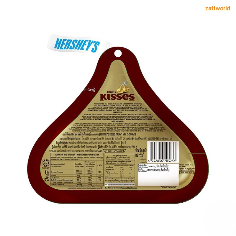 Hershey's Kisses Creamy Milk Chocolate with Almonds is a perfect bite-sized milk chocolate snack that is great for crowd-pleasing candy dishes, party favors or sharing with friends.