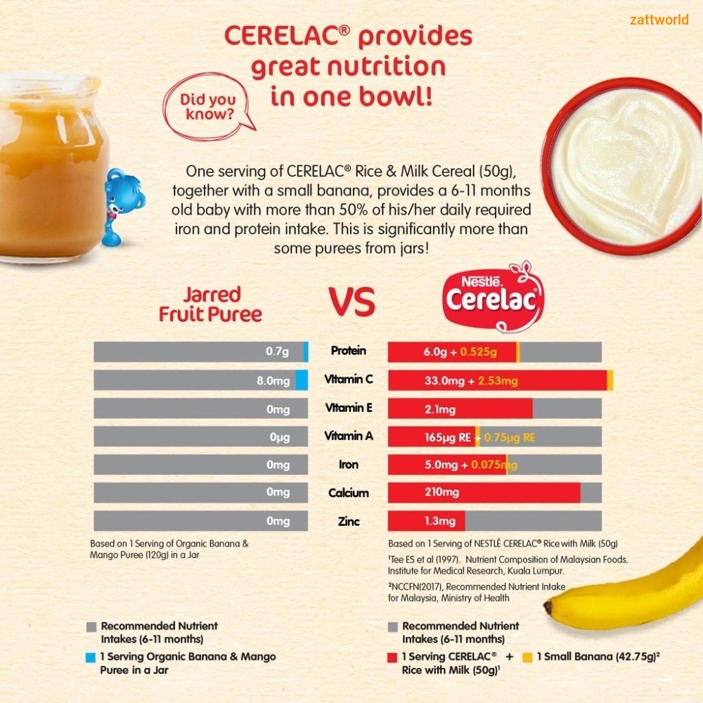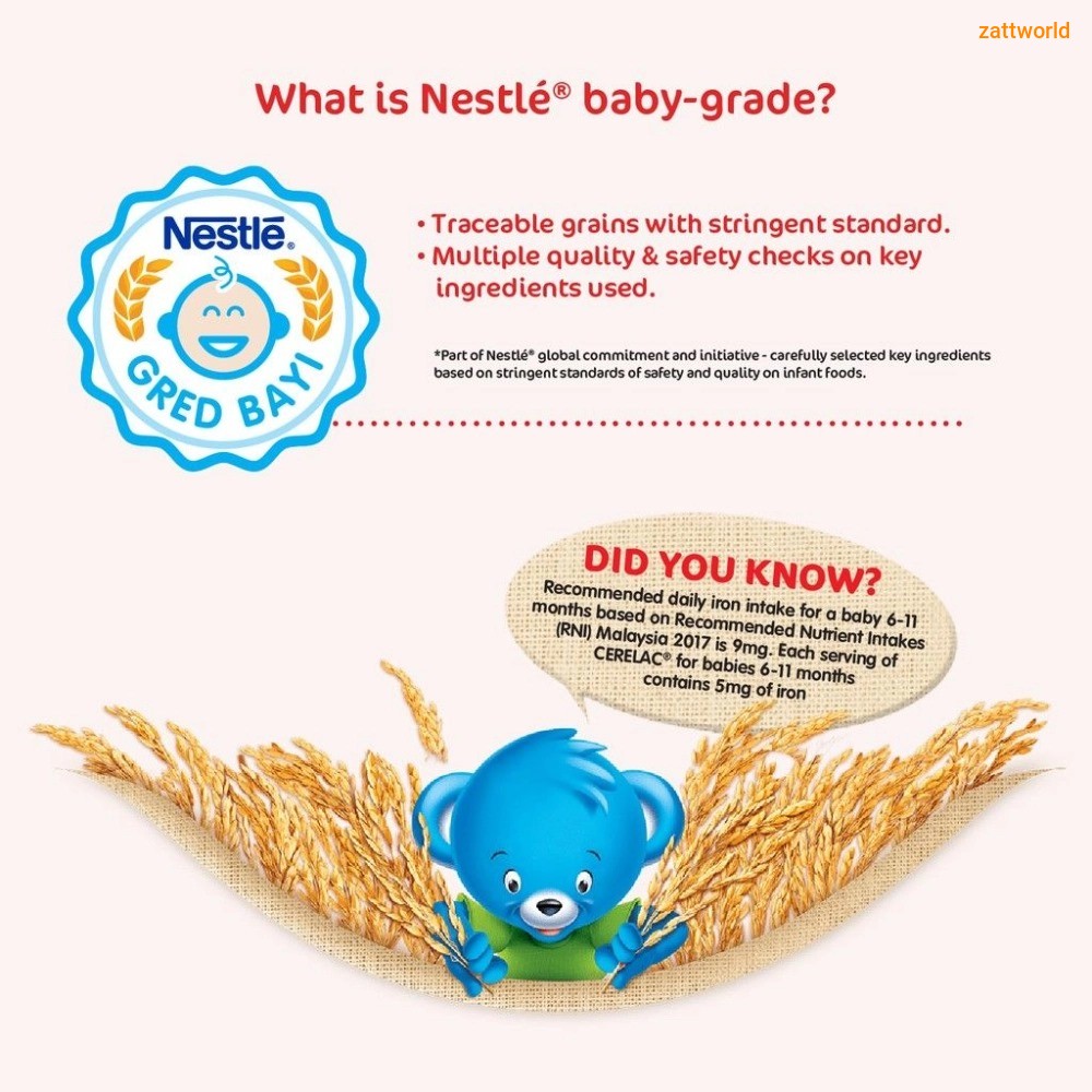 • Made with Nestle’s Baby Grade grains – carefully selected key ingredients based on stringent safety standards to ensure highest quality infant food