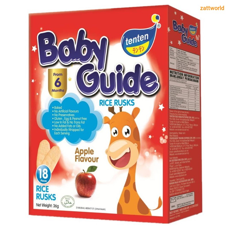 Specifications of TENTEN Baby Guide Rice Rusks 36g ( 6 Months+ ) - ( Original ), ( Vegetable ), ( Carrot ), ( Banana ), ( Apple